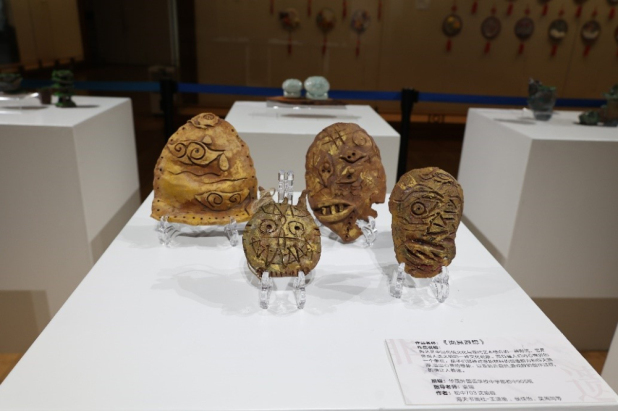 此次学生非遗作品展共展出非遗作品约120件,涵盖了剪纸、扎染、拓印、丝网版画、掐丝珐琅、泥塑、制扇、马勺脸谱、传统年画等多个非遗项目,充分展示了中国传统技艺的非凡与独特魅力,不仅加深了学生们对于中国传统非遗文化的理解与热爱,更是让非遗文化在实践中得到了保护和传承。