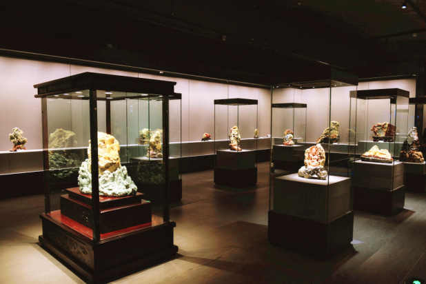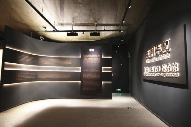 展厅面积约600平方米,由和田玉厅、四大国石厅和翡翠厅组成。玉石文化隐含着独特的、深厚的道德价值观和美育价值观,华茂将传统的玉石及玉石雕刻技艺展示给民众,意在将这一非物质文化遗产推广、传承与创新。