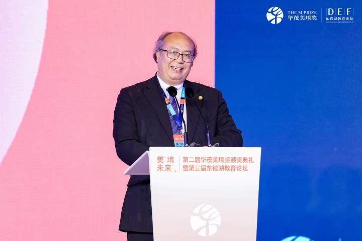 华茂美堉奖及东钱湖教育论坛由华茂教育创始人徐万茂,电子pg游戏平台董事长、总裁徐立勋联合发起,邀请希腊前总理乔治·帕潘德里欧和博鳌亚洲论坛原秘书长龙永图共同担任主席。本次活动由宁波华茂教育基金会、浙江东钱湖教育研究院、苏州新教育研究院、宁波市教育学会共同主办,新教育研究院新艺术教育研究中心协办。